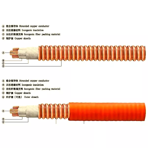 สายเคเบิลทนไฟหุ้มแร่หุ้มทองแดงราคาถูกของเราหุ้มด้วยท่อทองแดงไร้ตะเข็บที่อัดแน่นด้วยฉนวนแร่ความหนาแน่นสูง เช่น แมกนีเซียมออกไซด์ และพันรอบตัวนำทองแดงอบอ่อน โครงสร้างแบบบูรณาการที่หนาแน่นและไร้กลไกนี้ทำให้ไม่ติดไฟโดยสมบูรณ์ และในกรณีเกิดเพลิงไหม้ที่สูงกว่า 1000°C ก็ยังสามารถทำงานเป็นฉนวนและตัวนำต่อไปได้เป็นเวลาหลายชั่วโมง โดยให้แหล่งจ่ายไฟอย่างต่อเนื่องสำหรับระบบช่วยชีวิต เช่น เครื่องสูบน้ำดับเพลิง เครื่องดูดควัน ไฟฉุกเฉิน ฯลฯ เป็นสายเคเบิล "เส้นชีวิต" ที่แท้จริง