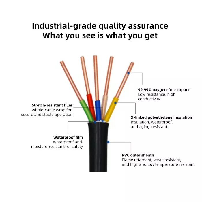 ฉนวน (YJ): ใช้ XLPE เพื่อให้ทนต่ออุณหภูมิในระยะยาวได้ถึง 90°C และมีคุณลักษณะทางไฟฟ้าที่ดีเยี่ยม ช่วยให้สายเคเบิลทำงานได้อย่างมีประสิทธิภาพภายใต้สภาวะปกติ